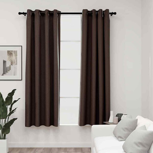 vidaXL Mørklægningsgardin med øskner linnedlook 2 stk taupe 140x175cm