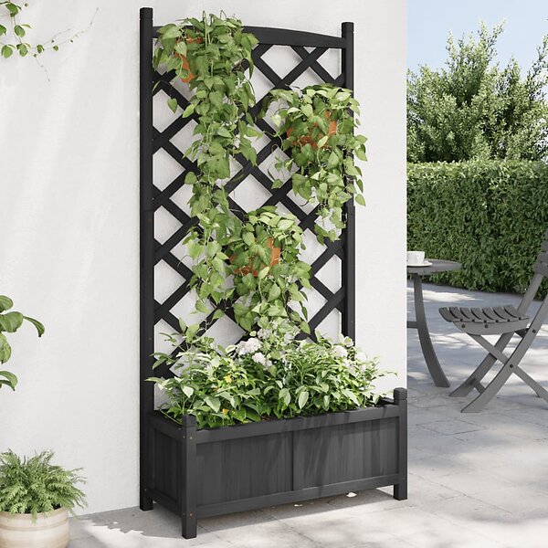 vidaXL Odlingslåda med spaljé svart massivt granträ 365490