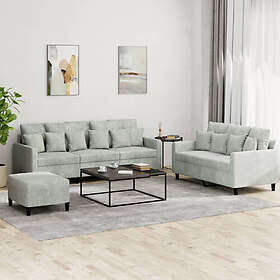 vidaXL Soffgrupp med dynor 3 delar ljusgrå sammet 3201730