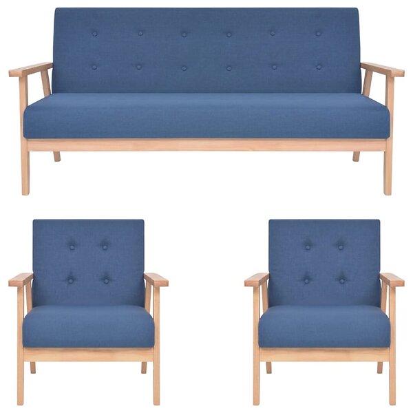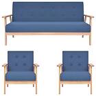 vidaXL Soffgrupp 3 delar tyg blå 279146