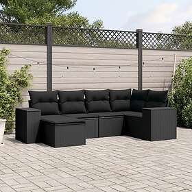 vidaXL Loungegrupp med dynor 6 delar svart konstrotting 3221094