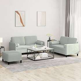 vidaXL Soffgrupp med kuddar 3 delar ljusgrå sammet 3202004
