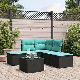 vidaXL Loungegrupp med dynor 6 delar svart konstrotting 3217726