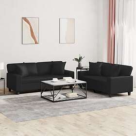 vidaXL Soffgrupp med kuddar 2 delar svart konstlæder 3201924