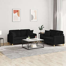 vidaXL Soffgrupp med kuddar 2 delar svart tyg 3202106