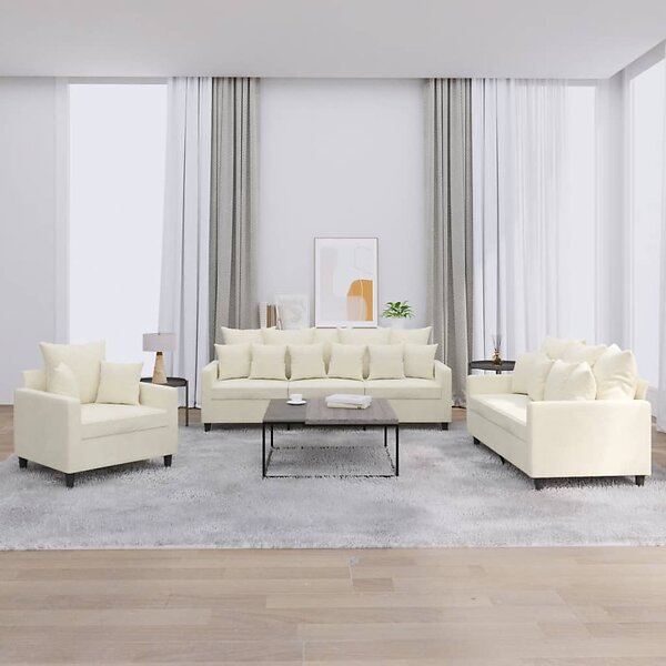 vidaXL Soffgrupp med dynor 3 delar gräddvit sammet 3201688