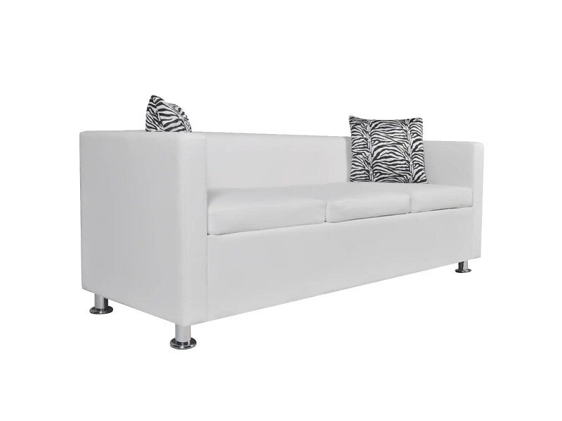 vidaXL Sofa 3-sæders konstlæder vit 242211
