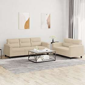 vidaXL Soffgrupp 2 delar gräddvit tyg 3201900