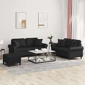 vidaXL Soffgrupp med kuddar 3 delar svart konstlæder 3202165