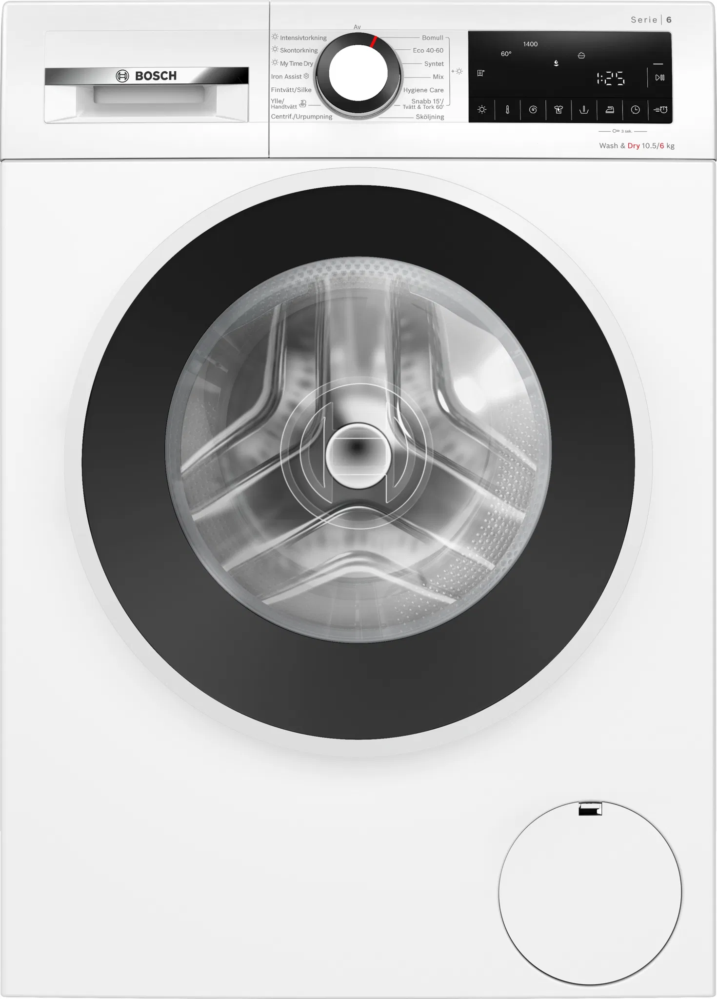 Vaskemaskinetype: Påfyldning fortil, Kapacitet (vaskecyklus): 6 kg, Type: Kombineret vaskemaskine/tørretumblerLæs mere