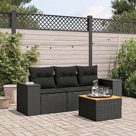 vidaXL Soffgrupp för trädgård med dynor 4 delar svart konstrotting 3257644