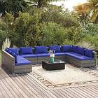 vidaXL Loungegrupp för trädgården 10 delar m. dynor konstrotting grå 3101918