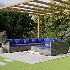 vidaXL Loungegrupp för trädgården med dynor 9 delar grå konstrotting 3102414