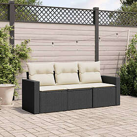 vidaXL Soffgrupp för trädgård med dynor 3 delar svart konstrotting 3218646