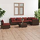 vidaXL Loungegrupp för trädgården med dynor 7 delar konstrotting brun 3102331