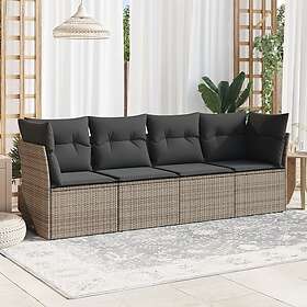 vidaXL Trädgårdssoffset med dynor 4 delar konstrotting grå 3217230