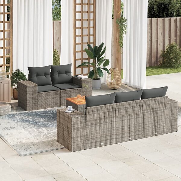 vidaXL Loungegrupp för trädgården med dynor 6 delar grå konstrotting 3257663