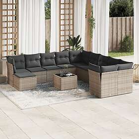 vidaXL Soffgrupp för trädgården 12 delar med dynor grå konstrotting 3218620