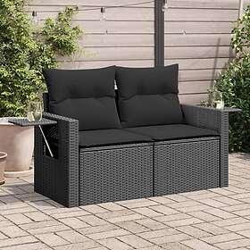 vidaXL Trädgårdssoffa 2-sits med dynor konstrotting svart 366005