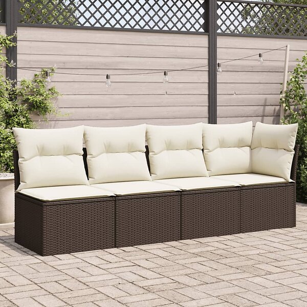 vidaXL Trädgårdssoffa 4-sits med dynor konstrotting brun 366202