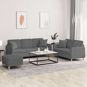 vidaXL Soffgrupp med kuddar 3 delar mörkgrå tyg 3202143