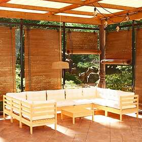 vidaXL Loungegrupp med gräddvita dynor 10 delar massiv furu 3097325