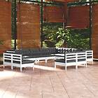 vidaXL Loungegrupp med dynor 12 delar vit massiv furu 3096876
