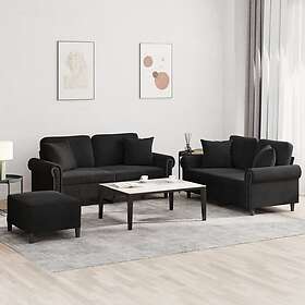 vidaXL Soffgrupp med kuddar 3 delar svart sammet 3202245
