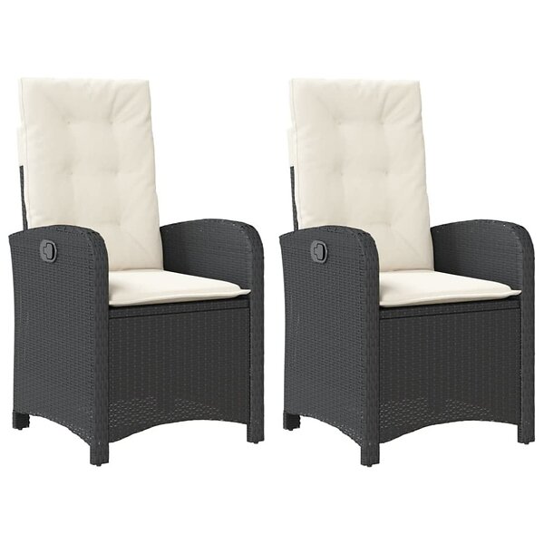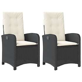 vidaXL Justerbara trädgårdsstolar 2 st med dynor svart konstrotting 365168