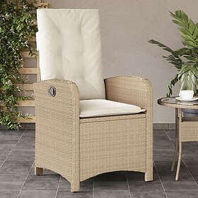 vidaXL Justerbar trädgårdsstol med dynor beige konstrotting 365164