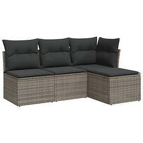 vidaXL Trädgårdssoffset med dynor 4 delar konstrotting grå 3249339