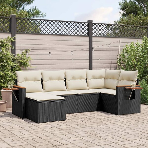 vidaXL Loungegrupp med dynor 6 delar svart konstrotting 3259417