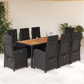 vidaXL Matgrupp för trädgården med dynor 9 delar svart konstrottning 3212237