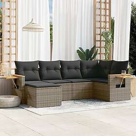 vidaXL Loungegrupp för trädgården med dynor 6 delar grå konstrotting 3259421