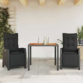 vidaXL Matgrupp för trädgården med dynor 3 delar svart konstrotting 3212906
