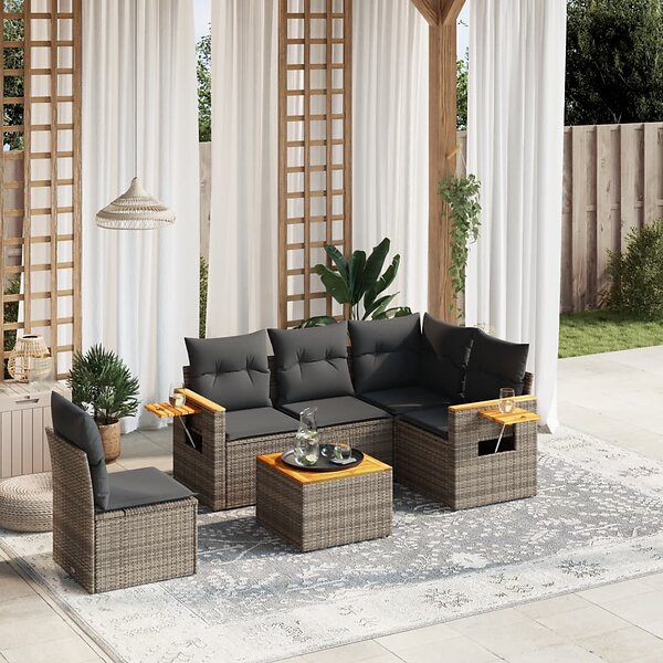 vidaXL Loungegrupp för trädgården med dynor 6 delar grå konstrotting 3259225