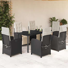 vidaXL Matgrupp för trädgården med dynor 7 delar svart konstrotting 3212525