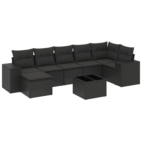 vidaXL Loungegrupp för trädgården med dynor 8 delar svart konstrotting 3222884