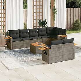 vidaXL Loungegrupp för trädgården m dynor 9 delar grå konstrotting 3226998