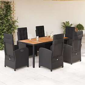 vidaXL Matgrupp för trädgården med dynor 7 delar svart konstrotting 3212236