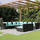 vidaXL Loungegrupp 10 delar med svarta dynor konstrotting 3102425