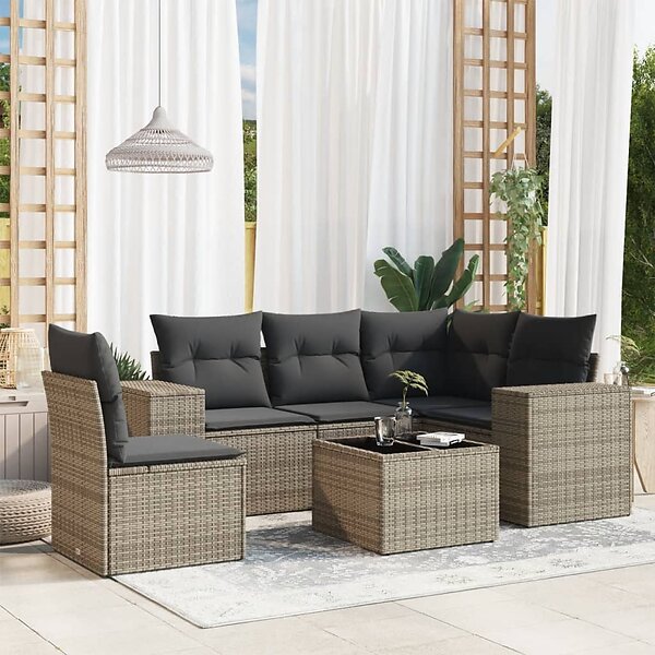 vidaXL Loungegrupp för trädgården med dynor 6 delar grå konstrotting 3222579
