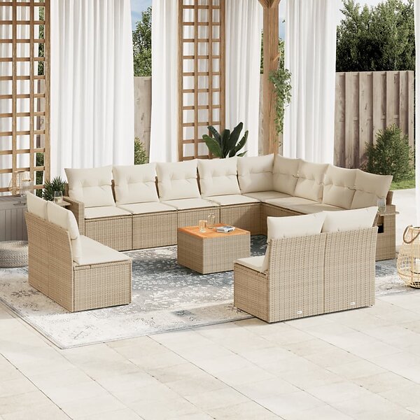 vidaXL Soffgrupp för trädgården med dynor 13 delar beige konstrotting 3257143