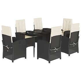 vidaXL Matgrupp för trädgården med dynor 7 delar svart konstrotting 3212296