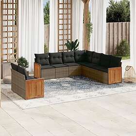 vidaXL Loungegrupp för trädgården m dynor 9 delar grå konstrotting 3260184