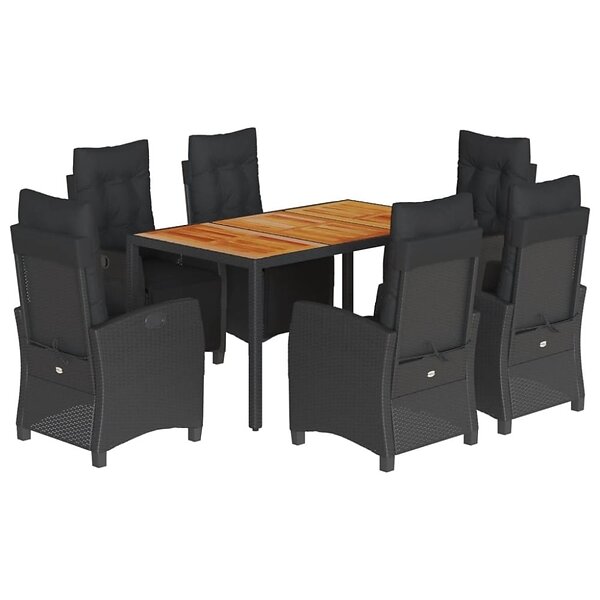 vidaXL Matgrupp för trädgården med dynor 7 delar svart konstrotting 3212909