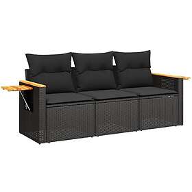 vidaXL Soffgrupp för trädgård med dynor 3 delar svart konstrotting 3258996