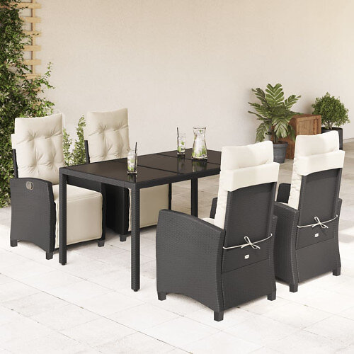 vidaXL Matgrupp för trädgården med dynor 5 delar svart konstrottning 3212884