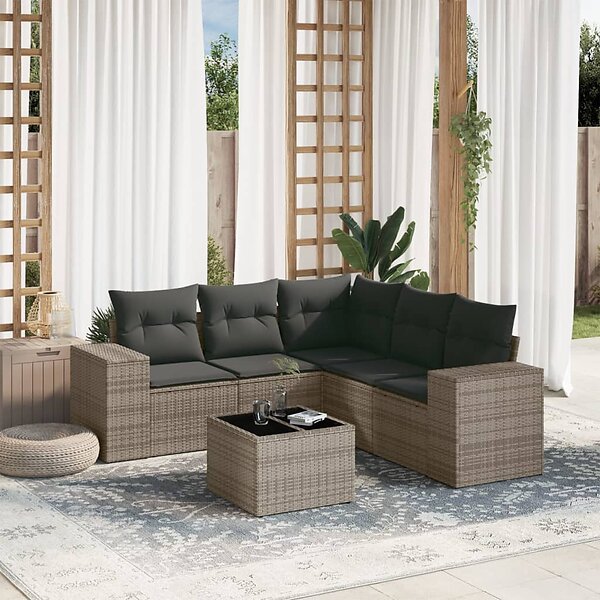 vidaXL Loungegrupp för trädgården med dynor 6 delar grå konstrotting 3222559