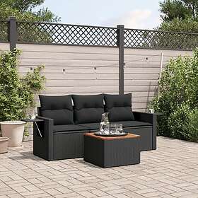 vidaXL Soffgrupp för trädgård med dynor 4 delar svart konstrotting 3256762